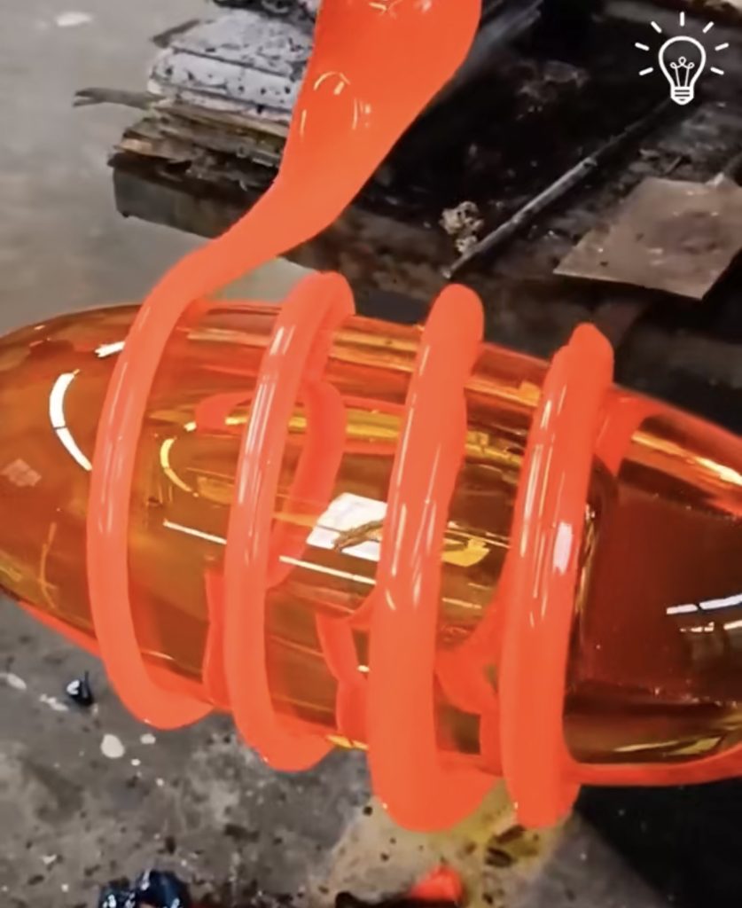 Kaca dilelehkan di tungku khusus dengan suhu tinggi. Harus konsisten dan diawasi terus.
